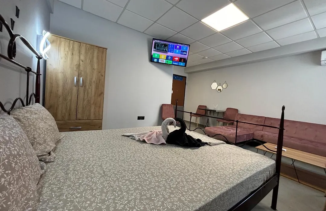 This apartment has a kitchen, fitted with a fridge and a cooktop. The nearest bus stop, Palios Sidirodromikos Stathmos, is approximately 400 metres away.
